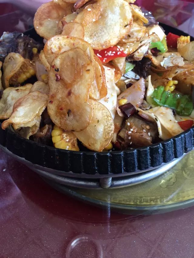 我不会告诉你,我们点的是大盘鸡,老板给我们上的是......超大盘鸡!!!