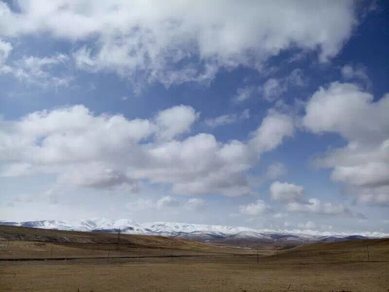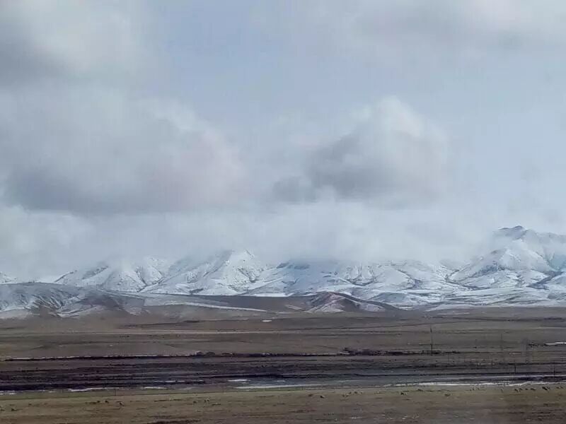 先给你们看看路左边的雪山草原,没到夏季还很萧条,不过,还有哪个地方能将中国最美的湖泊,茫茫的草原和雪山放在一副图画里呢?还有右边的青海湖,像蓝色的纱一样澄澈透明,先不上图,哈哈