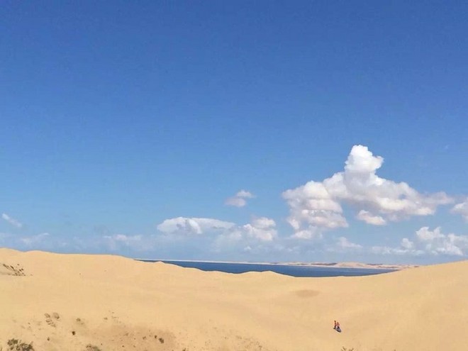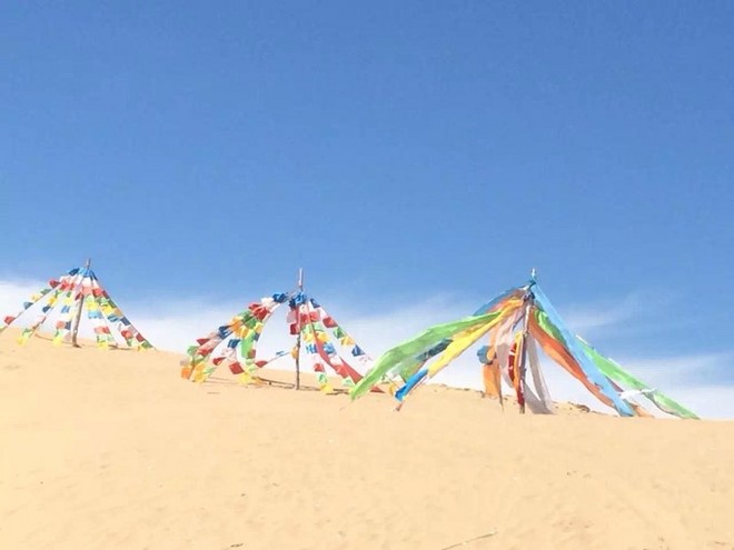 途经湖东沙漠,没想到青海湖边还有这么长的沙漠带。沙漠、湖泊、绿洲相互交织的背景又增加了我们摄影爱好者的摄影题材,心随景变,真想停下来和沙漠丘陵上的快乐人儿一样高坡冲沙,低傍湖泊听风吟唱,可惜远远拉队的我容不得任性的逗留。