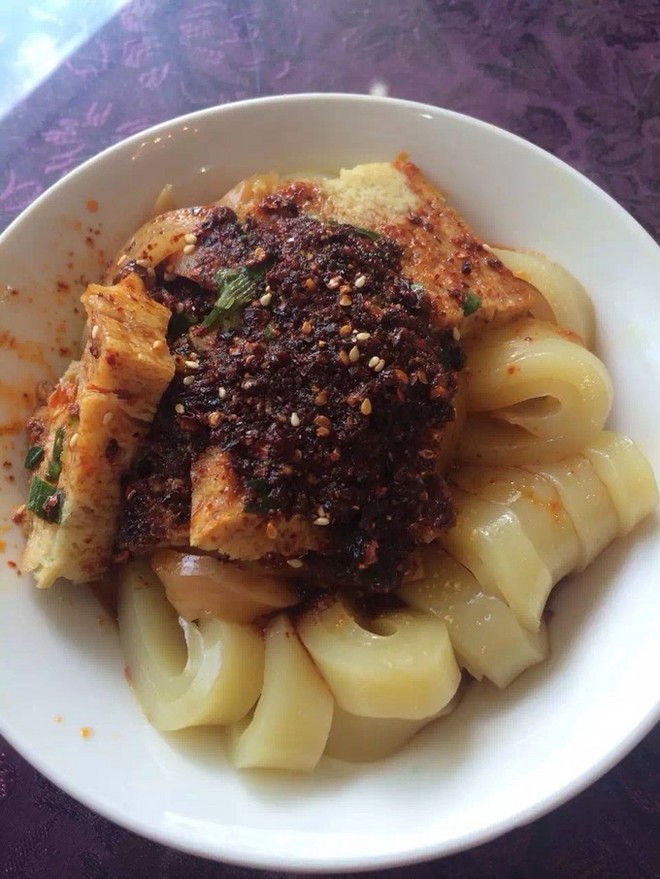 第二天早上睡到自然醒后继续找吃的,就在益鑫的同一条街上就有闻名西宁的马忠食府,个人觉得那里的味道没有益鑫的好,但价格要便宜很多,卫生环境比较差,十点多就已经满座,我被安排了和两个男人拼桌,杀千刀的,人家还准备大吃特吃一顿呢!也好,别还没玩就吃坏肚子了。就点了比较出名的羊杂汤(推荐,味道浓,份量足,二十块一大碗)、凉皮、酸奶。个人喜欢四川的凉皮,西宁的凉皮太厚,口感比较粘糊,不喜欢。当我把那么大一碗牛杂汤喝完后再吃酸奶时已经吃不下了,尝了几口味道还行,对于一名吃货最悲催的应该就是胃太小了吧。