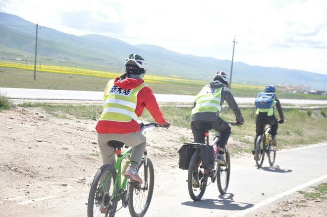 青藏公路上貌似成了骑行大道,路上的机动车时而疾驰飞过,有点险象环生,但无论是骑行团队还是骑行的个人,大家都很自发的沿着公路两旁顺道而骑,只要各行其道还是很安全滴。