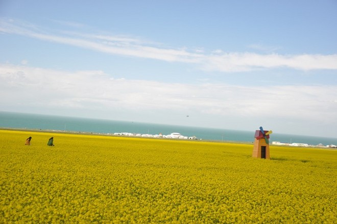 队友小荛跑到湖边拍的青海湖,青海湖是构造断陷湖,湖盆边缘多以断裂与周围山相接,属于外流淡水湖。湖水容积739亿立方米,最长约104公里,最宽约62公里,最大水深3.14米,湖水平均矿化度12.32克/升,含盐量1.24%,湖面看不到有船只,旅游景区能有这种环境保护意识的政府的确要给个大大的赞。