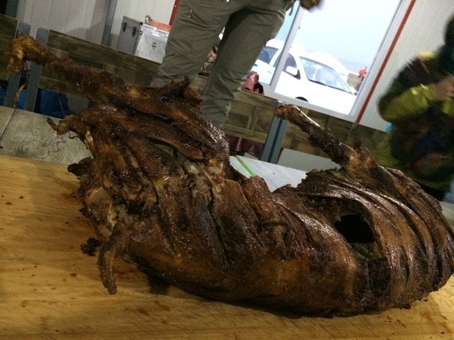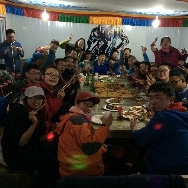 晚上我们合份出钱买了一头羊,2500元一头,二三十个人吃份量也足够了,虽然价格有点小贵,但味道还是很好的,最重要的是大家白天辛苦了一天,必需慰劳一下,大家围在一起吃羊聊天,一起听领队扎西讲笑话和唱当地的民歌,好不欢乐。