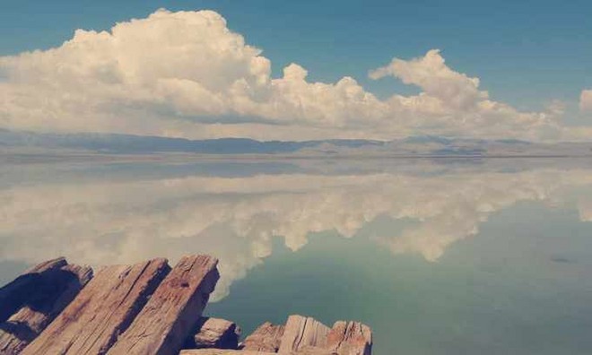 我们到达盐湖应该是在中午十一点左右,不是最佳拍照时间,太阳有点烈,不过也好过阴雨天吧。只要是晴天,白色的湖就会倒影出湛蓝的天空,棉花糖似的白云,远处的草原相隔在白云与湖面之间增加了画面的层次感。