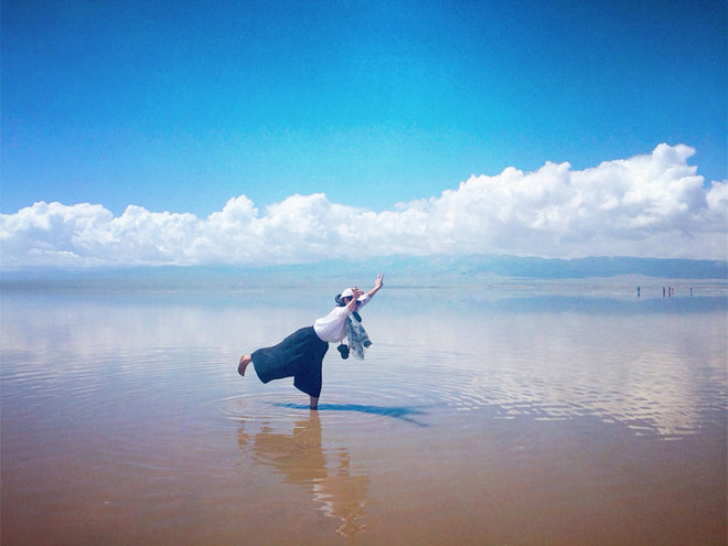 盐湖到处都是漂亮的MM,相机随便移都是一道美丽的风景,越是穿着鲜艳的拍出来的视觉效果就越好,建议去的姑娘都穿上鲜艳的裙子,仙女下凡、女神什么的都不是事。