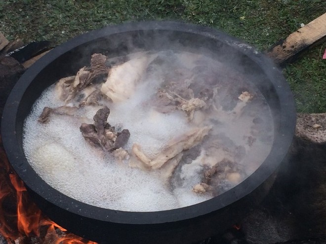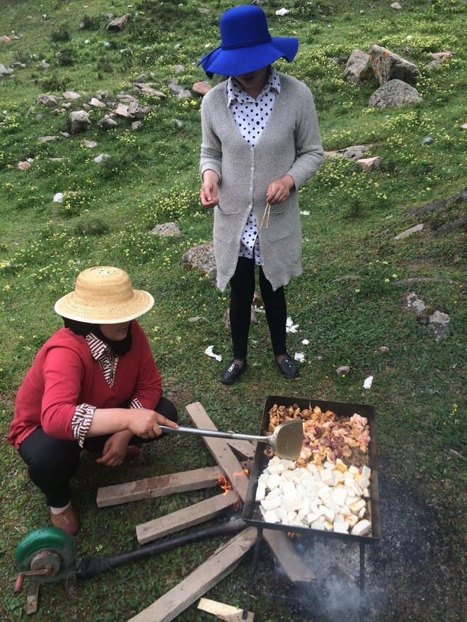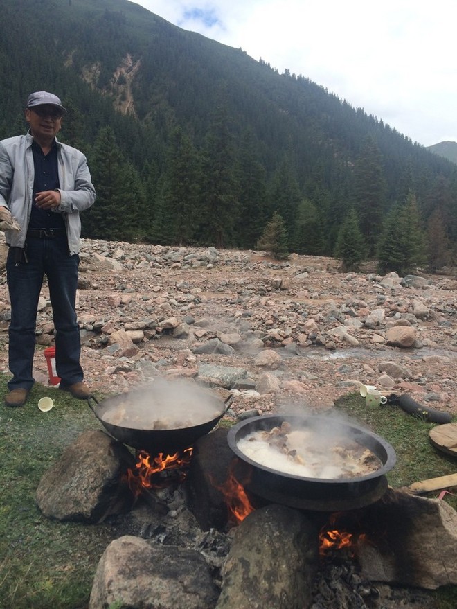 偶遇当地人在河边野炊,好大一锅羊肉,害我一步三回头的咽口水