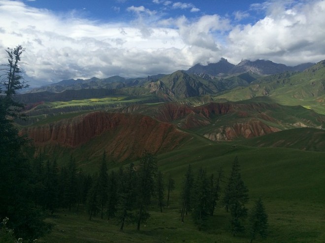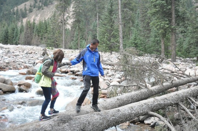 顺大通河而上,牛羊在悠然吃草,牧民的帐篷点缀在草原上,堪称一道靓丽的风景线,翻越冰沟达坂雪山,于冰沟林海漫步约3公里寻宝,我们大口呼吸免费的新鲜空气,在麦田山间小路穿梭徒步3公里前往卓尔山,天空又开始下起了毛毛细雨,本来就穿得少的我也没带任何雨具,领队说要冒雨前行的时候真想当着他面哭出来,哆嗦着走了几步后领队小鱼竟然脱掉他的外套让我穿上,他里面只穿着一个短袖T恤,这下我真的热泪盈眶了,一路都有领队的照顾,真心感谢新大陆的领队们,太有爱了。