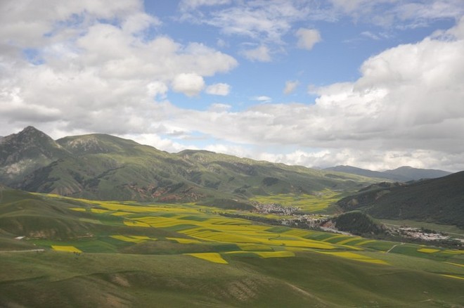 这里有卖手工酸奶的,有骑马拍照的,很多专门来拍婚纱照的,进去油菜花里面拍照要收费10元门票,虽然花痴一个但却不喜欢站在花丛里拍照,我们的队友也没见有人交费进去,在手工酸奶那看到破风领队扎西和几个队友已经在这等候。我也停好车休息顺便尝了下酸奶,但没加糖的酸奶我真心喝不下。