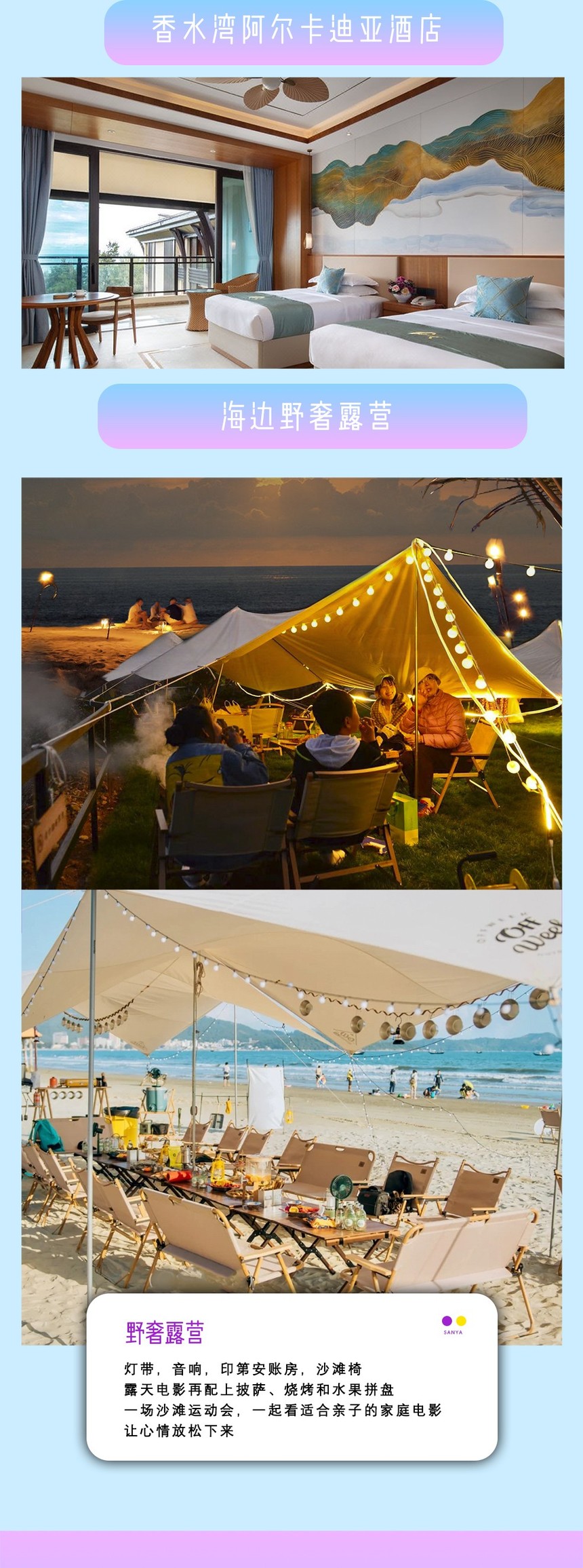 灯带,音响,印第安账房,沙滩椅,露天电影再配上意大利面、披萨、烧烤和水果拼盘,一场沙滩运动会,一起看适合亲子的家庭电影,很难不让心情放松下来。