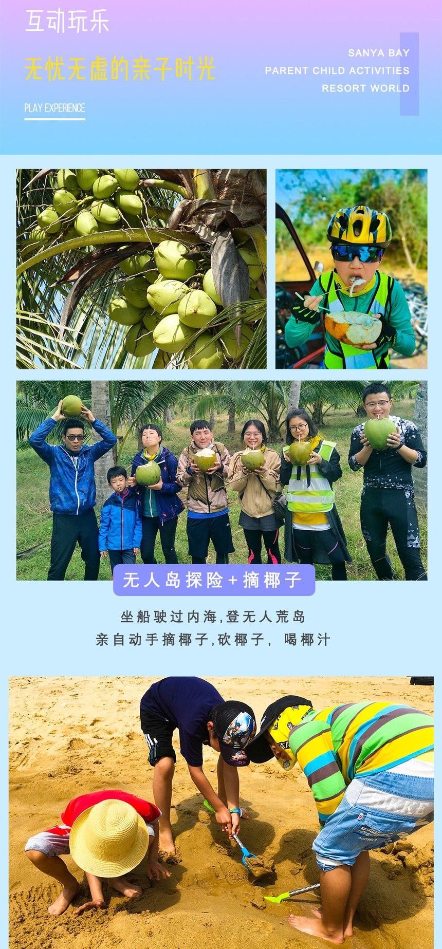 3. 玩乐项目:椰子采摘,海岸沙滩嘉年华,巧克力制作,桨板课程,热带花园徒步,乡村绿道及海岸公路骑行,红树林保育、海水水质检测、热带植物生态研学+标本制作、海洋动物保育